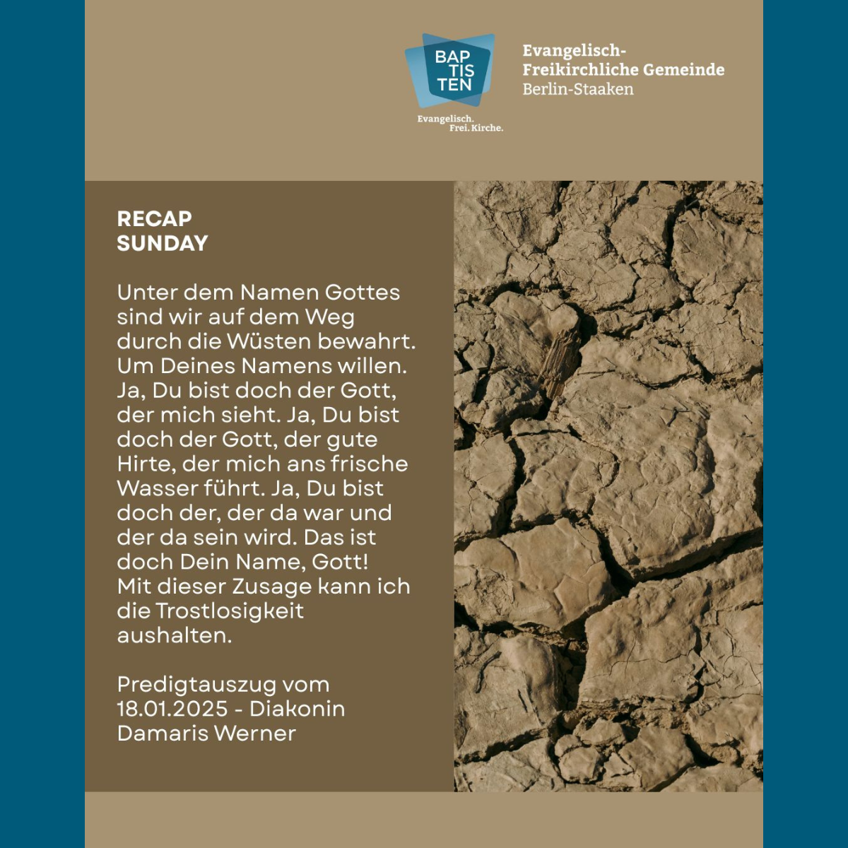 - Welcher Satz aus der Predigt oder aus Jeremia könnte dich in die kommende Woche begleiten?